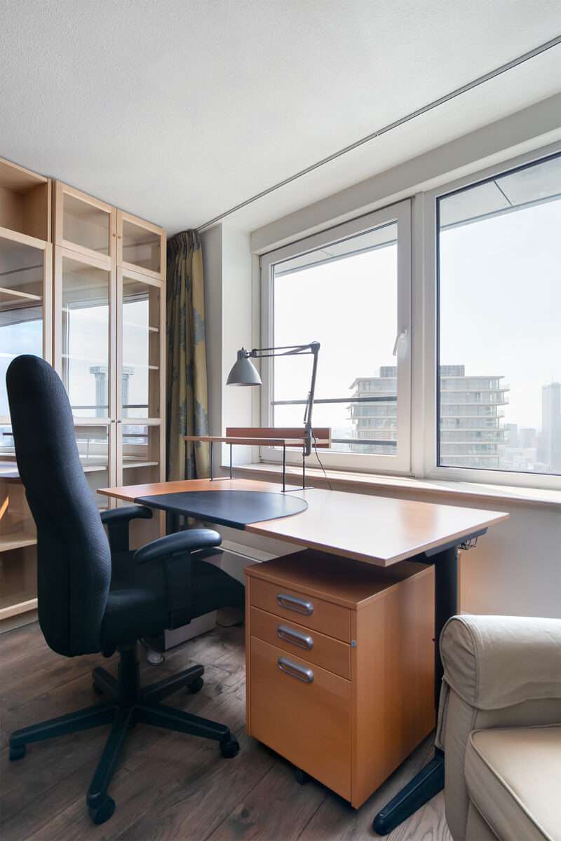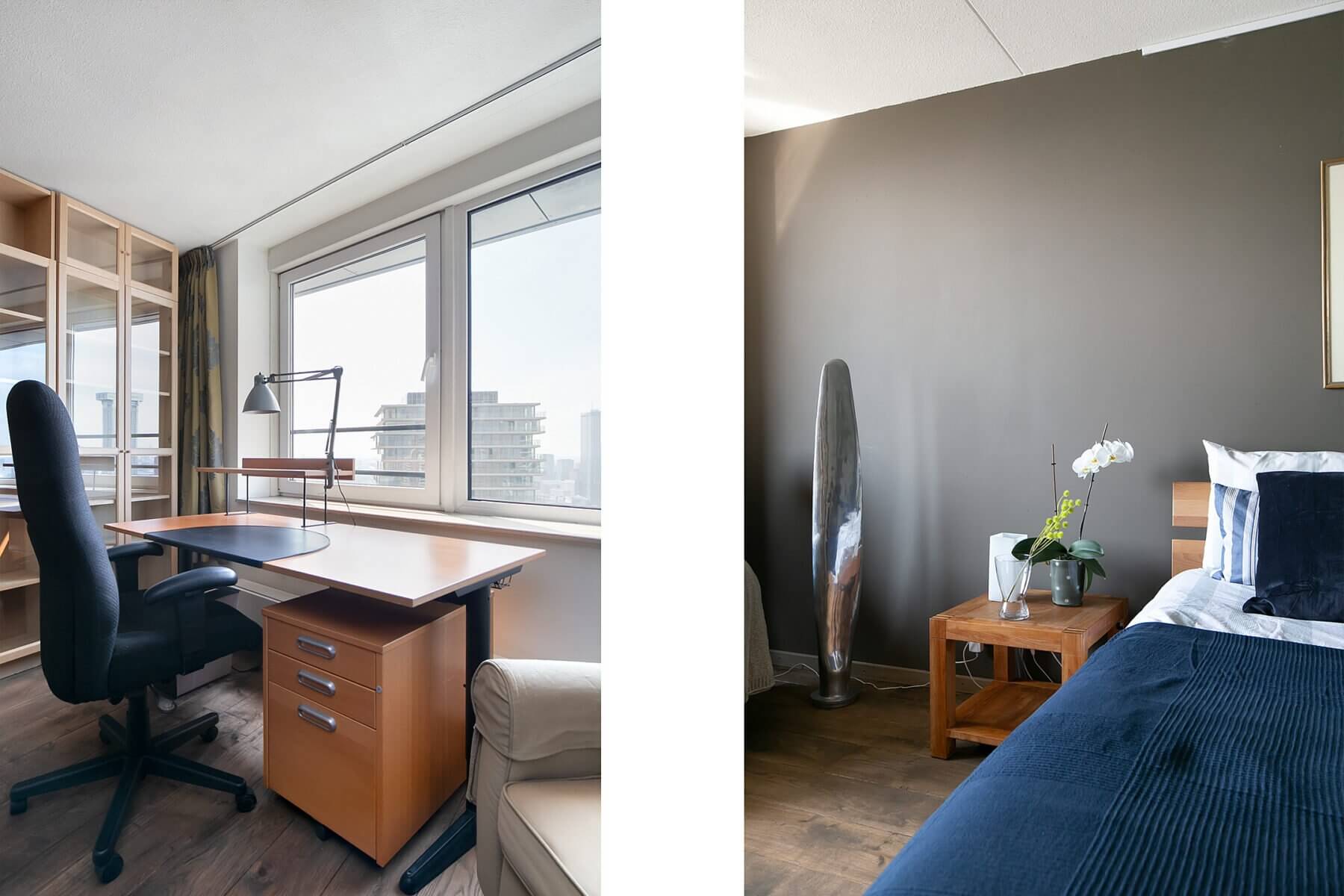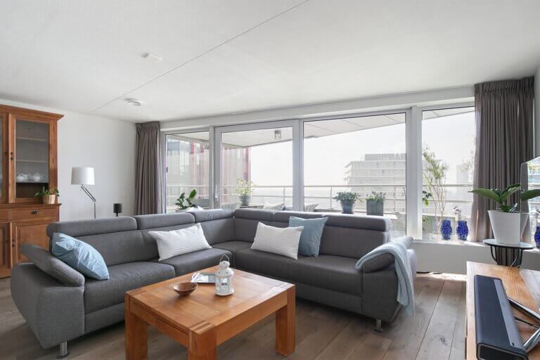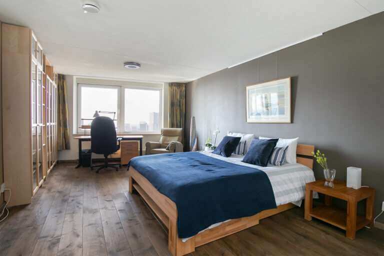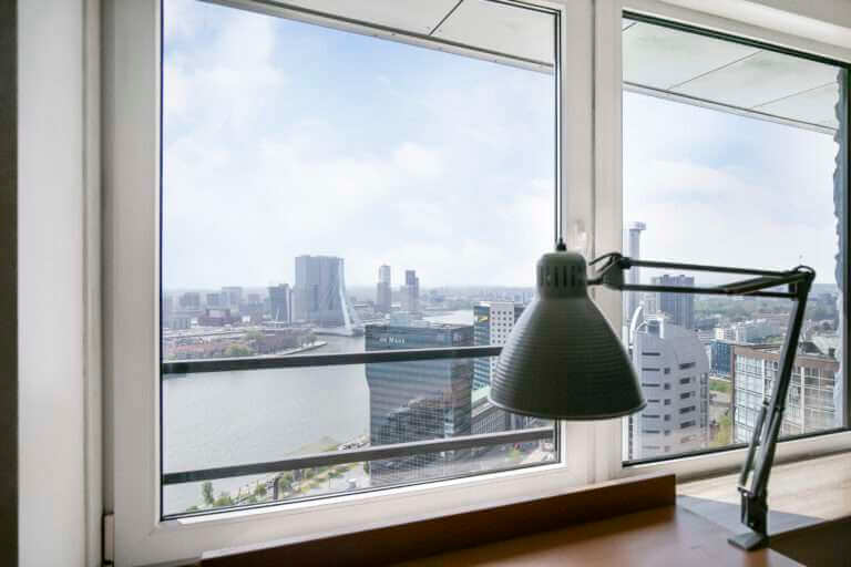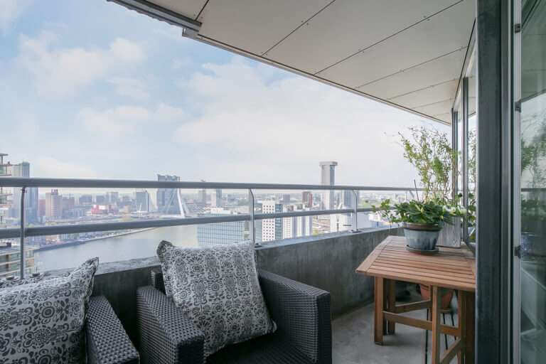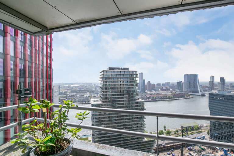 De woning voldoet helemaal aan de eisen van nu: de comfortabele meubels staan op een prachtige eiken houtenvloer, ruime living met grote tv en gerieflijke hoekbank, moderne keuken voorzien van luxe inbouwapparatuur, eetgedeelte met grote eettafel met 6 stoelen. Vanuit zowel de woonkamer als de slaapkamers heeft u een fantastisch uitzicht op de Nieuwe Maas en de skyline en wijde omgeving van Rotterdam.