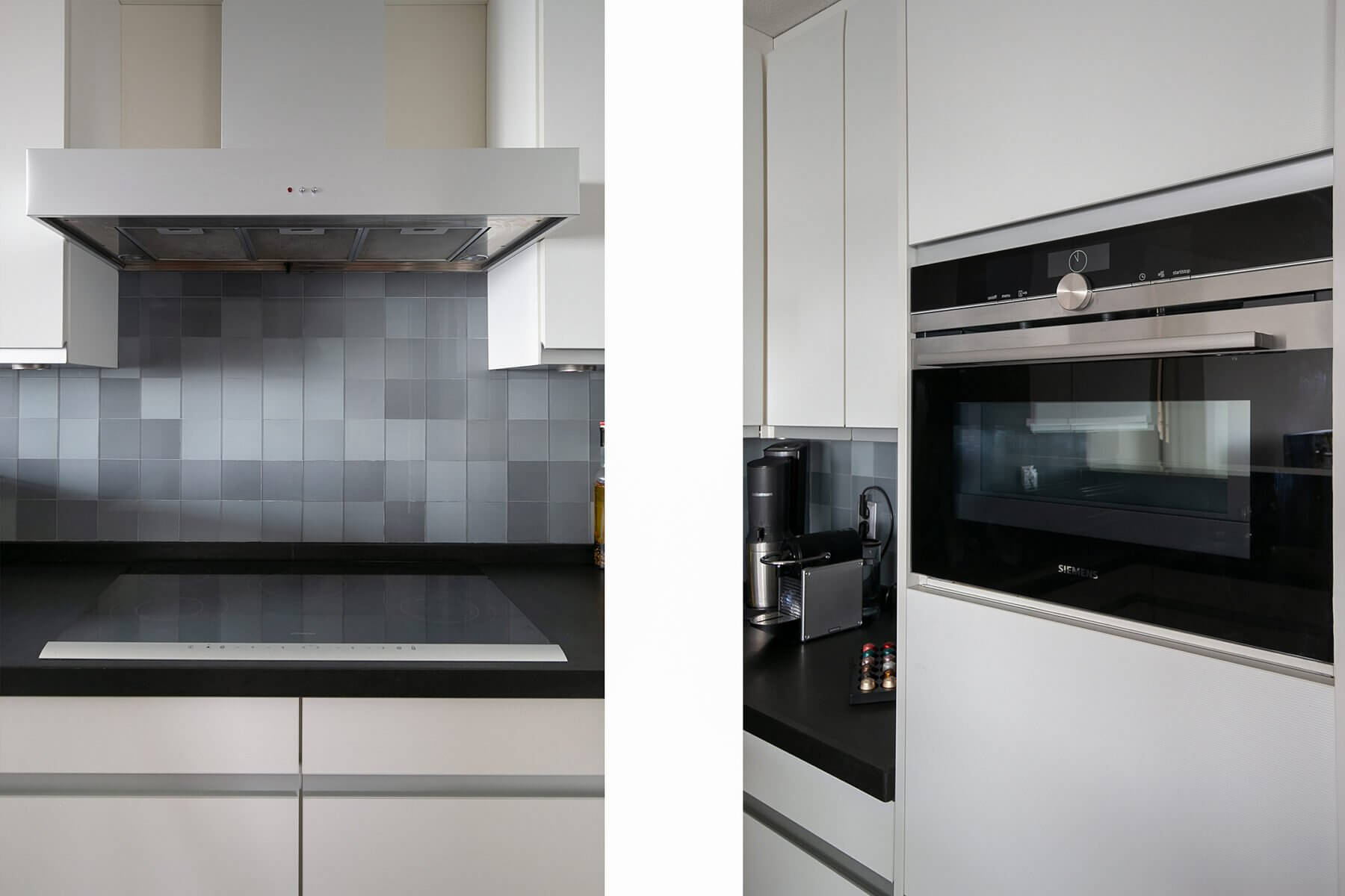 De luxe hoogglans witte keuken is voorzien van diverse luxe inbouwapparatuur zoals: