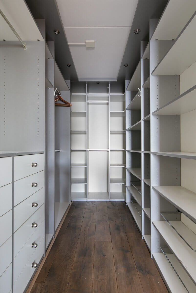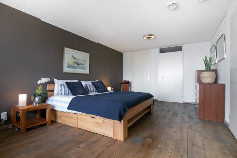 Ruime hoofd slaapkamer met lits umeaux, veel kastruimte, bureau, ruime badkamer en suite en aansluitend een prachtige inloopkast met mooie houten vloer inbouwspots, en veel kastruimte.