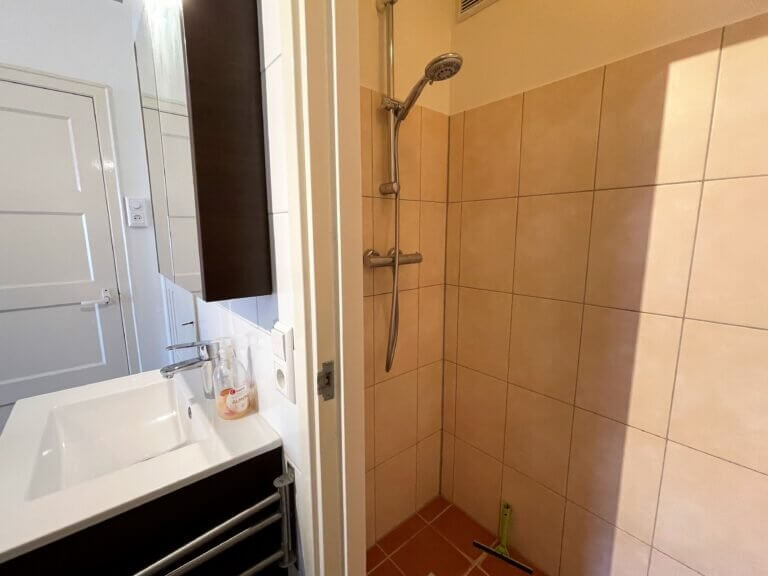 – Douche en suite aan de grootste slaapkamer (douche is dus enkel toegankelijk via de grote slaapkamer,, zie foto’s en filmpjes)