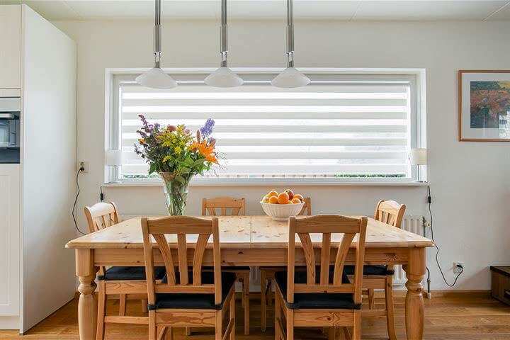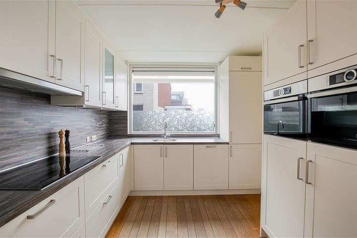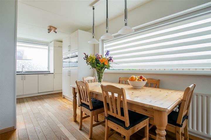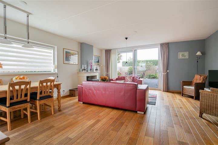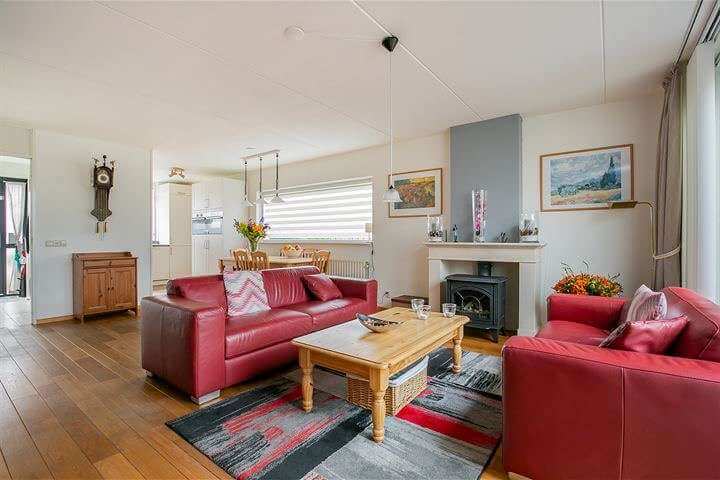 Vanuit de hal betreedt u de woonkamer welke is voorzien van een houten vloer, een gashaard, een kast onder de trap en een open keuken aan de voorzijde van de woning. De keuken (ca. 5 jaar oud) is voorzien van een 5-pits inductiekookplaat, een afzuigkap, een vaatwasser, een koel/vriescombinatie, een close-in boiler, een oven en een combi oven/magnetron.
