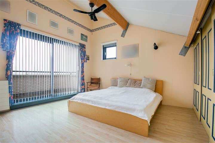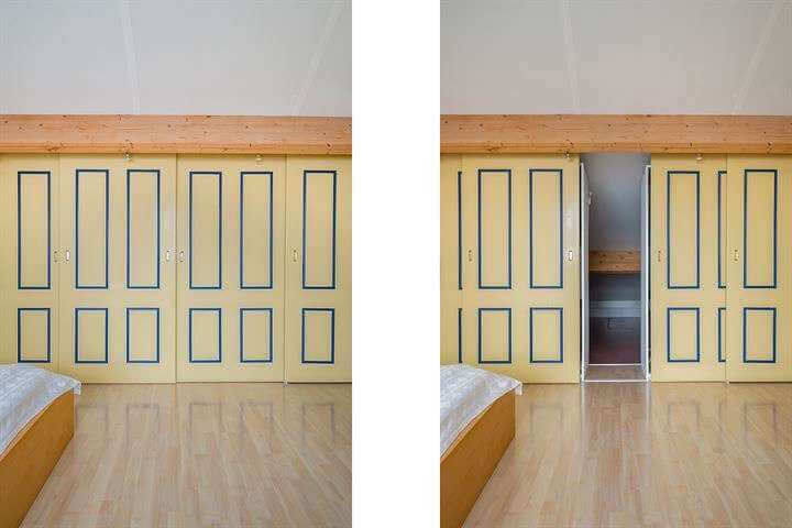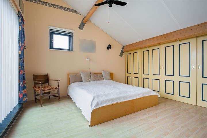 De slaapkamer aan de achterzijde is voorzien van een vaste kast. Voorheen waren dit twee slaapkamers, uiteraard kan dit weer worden teruggebracht naar originele staat indien u een slaapkamer te kort komt.