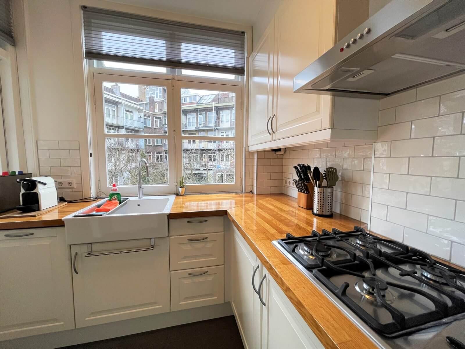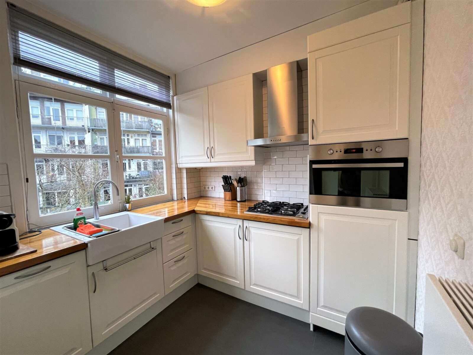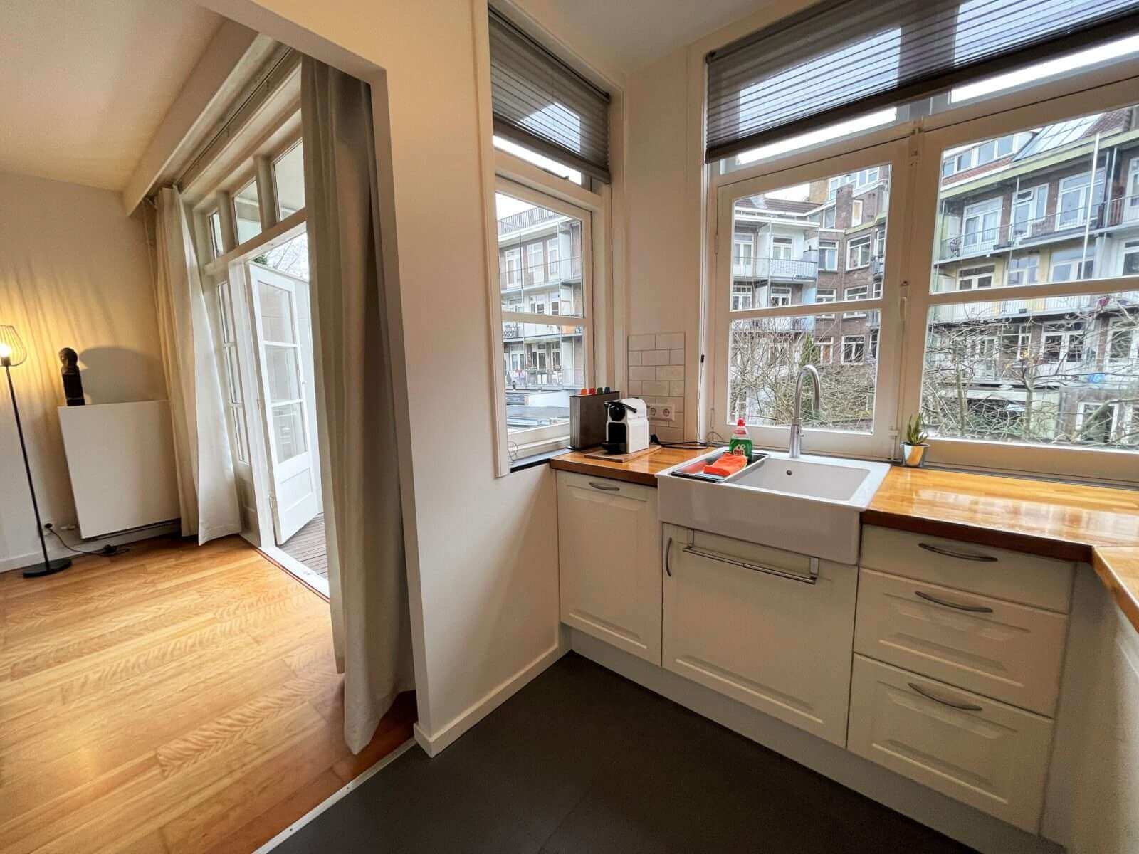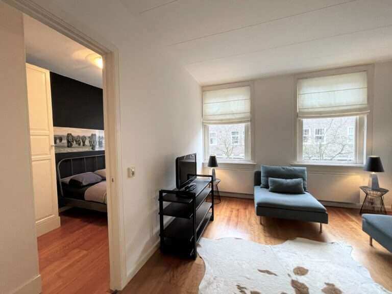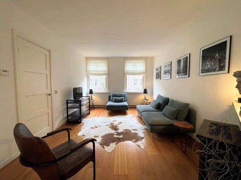 Prachtig gemeubileerd 3 kamer (2 slaapkamer) appartement in Amsterdam Zuid in de mooie Woubruggestraat met balkon met openslaande deuren!
