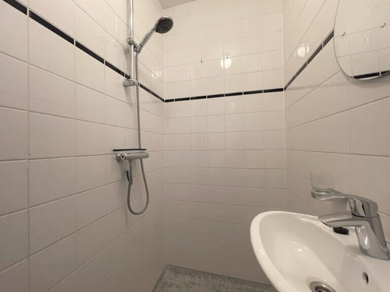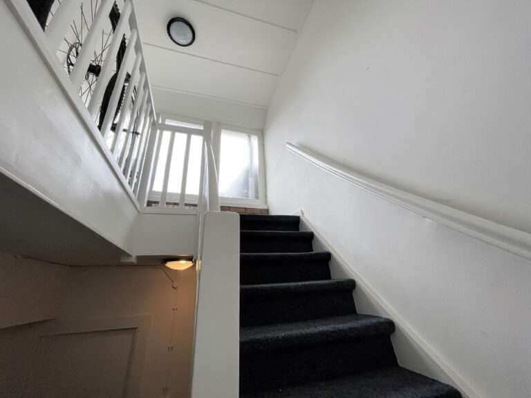 Gemeenschappelijk zeer verzorgd trappenhuis. Entree op de eerste verdieping. Hal met toegang tot de badkamer, voorzien van een douche, wastafel en toilet. Ruime, lichte en gezellige woon- en eetkamer met en suite deuren. Vanuit de eetkamer is middels openslaande deuren het zonnige balkon te bereiken. De open keuken is voorzien van een mooi houten werkblad, 4-pits fornuis, afzuigkap, combi oven-magnetron, Quooker, koelkast met vriesvak, vaatwasser en wasmachine. De tegelvloer in de keuken is voorzien van vloerverwarming. De woonkamer bevindt zich aan de voorzijde en biedt toegang tot de slaapkamer met prima kastruimte. Op de derde verdieping is een extra kamer die perfect gebruikt zou kunnen worden als logeer, werk- of slaapkamer.