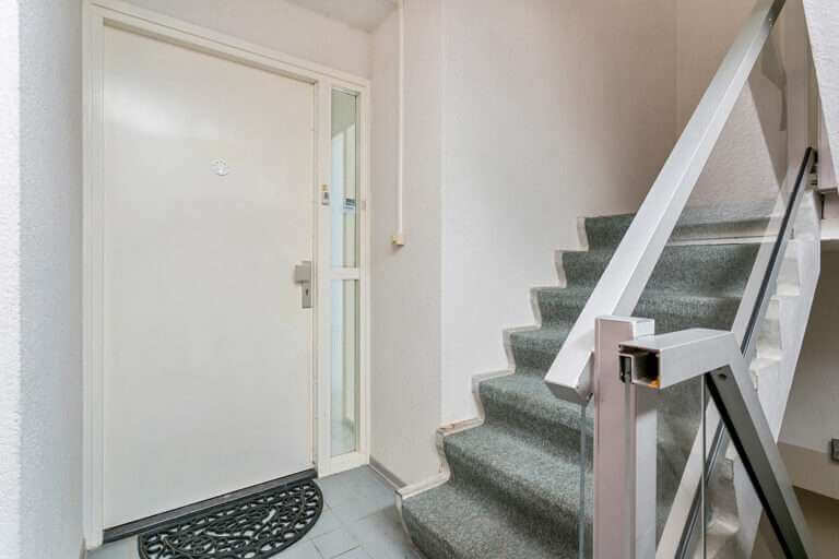 Afgesloten gezamenlijke entree met intercom en postbussen, trap, lift en toegang tot eigen berging. Eigen parkeerplaats voor de deur.
