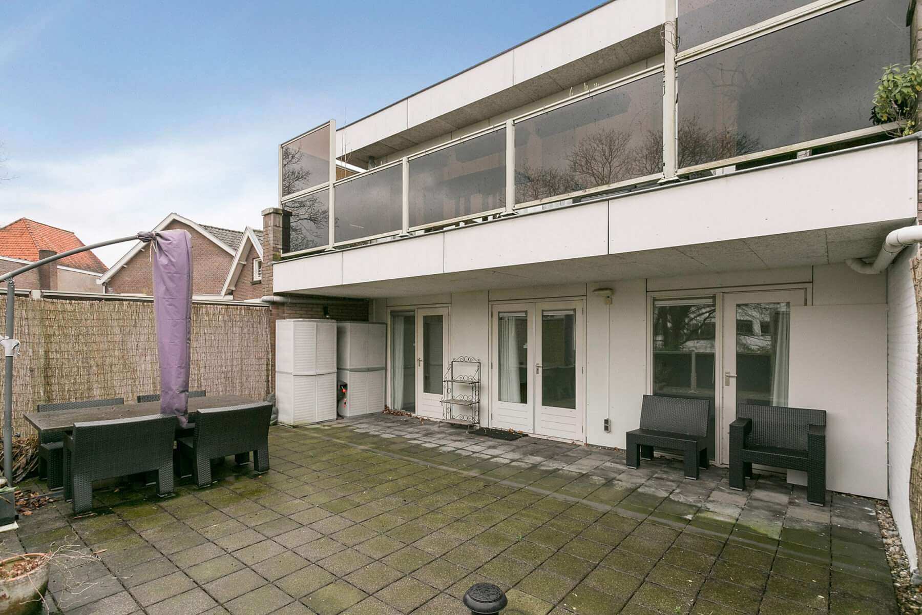 Zeer ruim en licht, luxe 3 kamerappartement in een kleinschalig complex met groot terras op het zuiden en eigen parkeerplaats voor de deur.