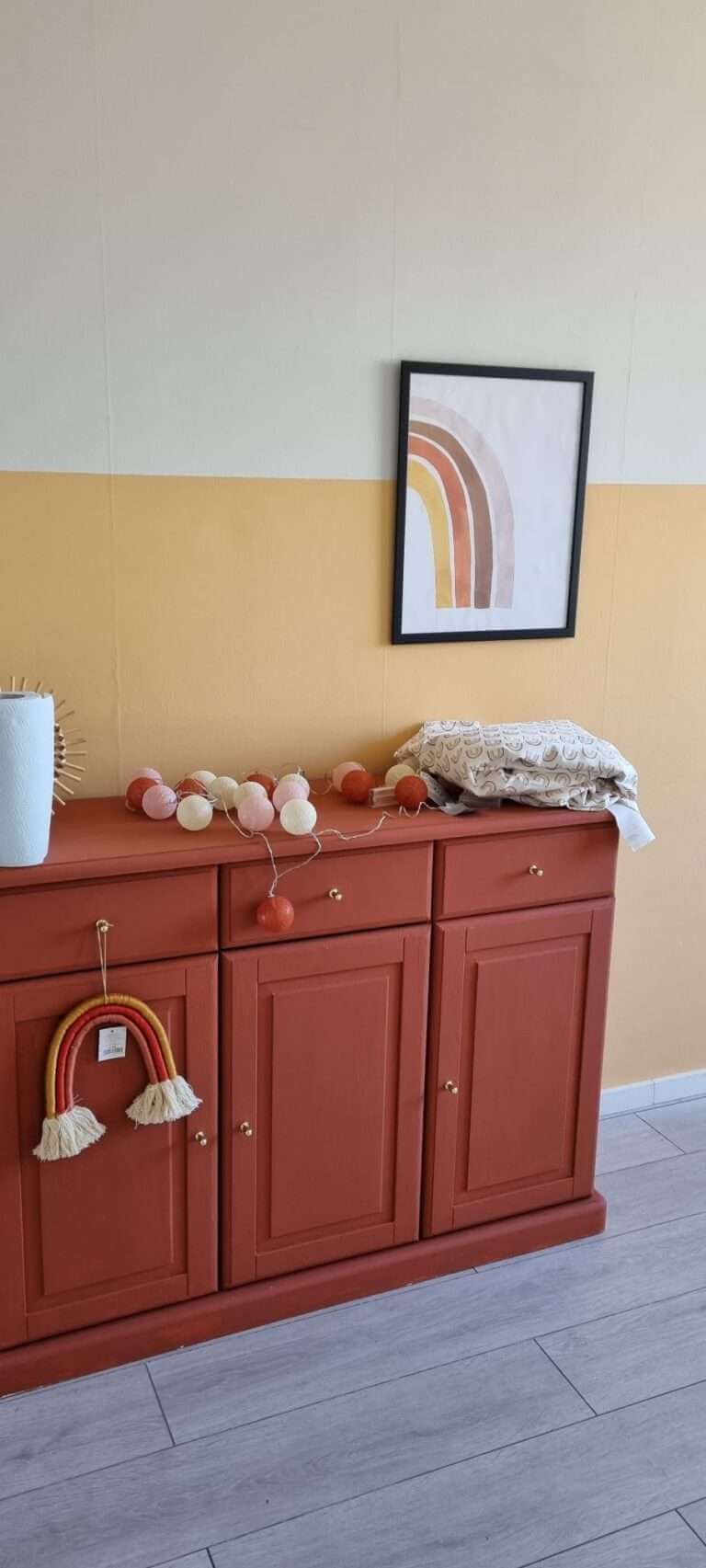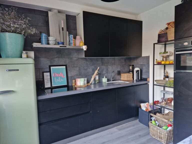 Aan de achterzijde bevindt zich de half open keuken met aangrenzend een eethoek waar met het hele gezin aangeschoven kan worden voor een maaltijd. Zet hier op een zomerse dag de openslaande deuren open en maak van de tuin een verlengde van de leefruimte.