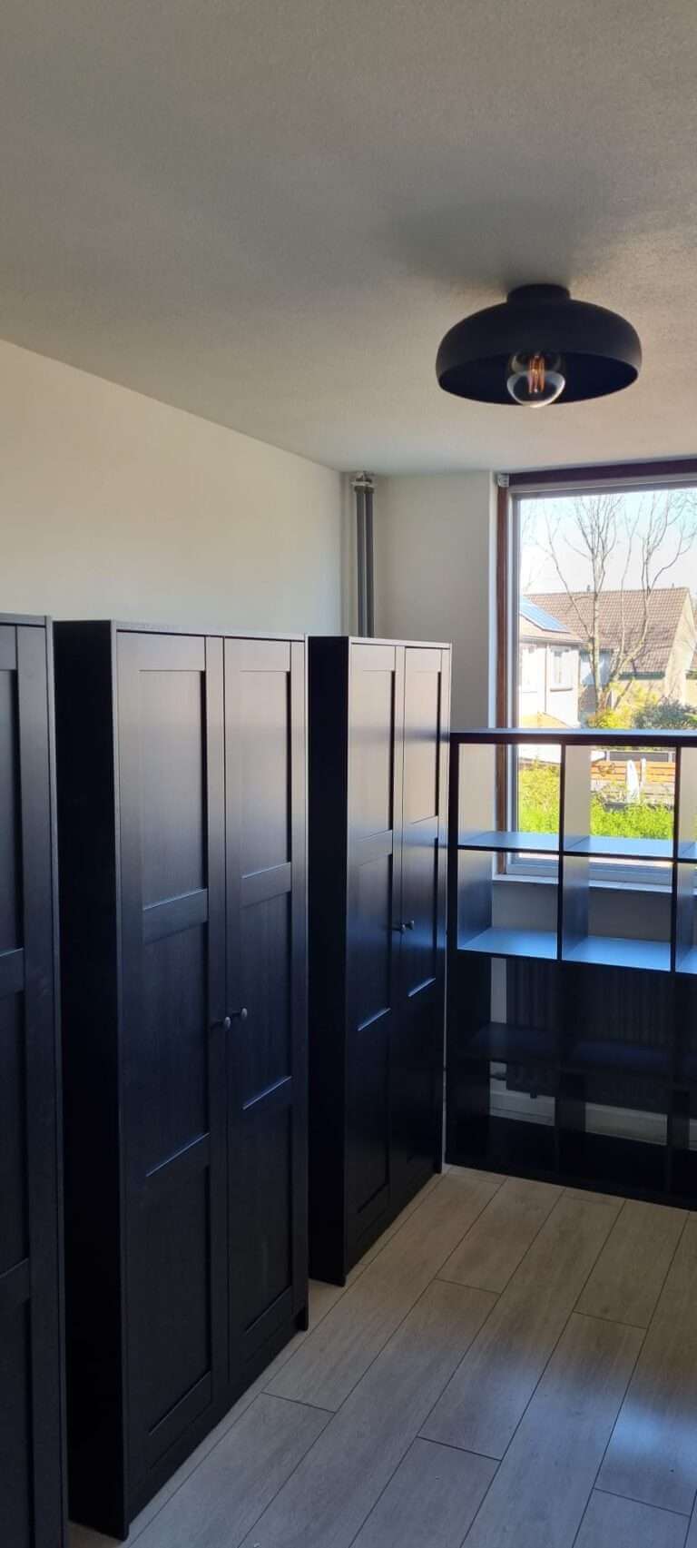 Overloop met dakraam, toegang tot de vierde slaapkamer. Op deze verdieping bevindt zich tevens de cv-ketel, het mechanisch ventilatiesysteem en de opstelplaats voor wasmachine en droger. De slaapkamer is ruim van formaat en voorzien van een dakraam . De knieschotten in de kamer bieden extra opbergmogelijkheden.