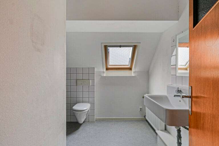 Overloop, 2 slaapkamers, badkamer voorzien van wastafel, douche en toilet.
